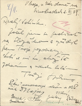 inkoustem psaný dopis 2. 11. 1939