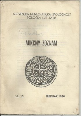 Aukčný zoznam - Numizmatika