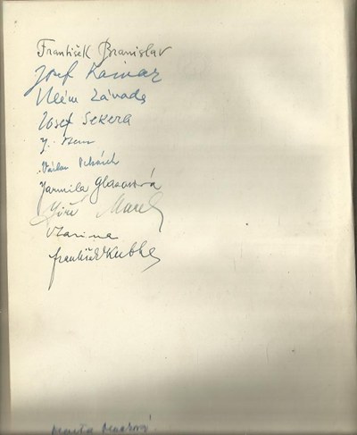 podpisy: František Branislav, Josef Kainar, Vilém Závada, Josef Sekera, Jan Štern, Václav Pekárek